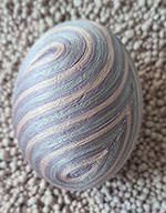 Vor einigen Jahren hat mich eine Sammlerin von Ostereiern gedrängt, mit der gleichen Technik Natureier zu verschönern. Zuerst stand ich diesem Unterfangen sehr skeptisch gegenüber, denn dreidimensionale Objekte zu „umgarnen“ erfordert eine komplett andere Technik und Herangehensweise.